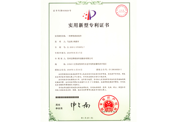 一种弹性密封组件 实用新型证书