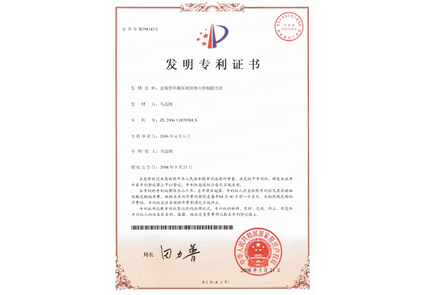 金属管环模压密封垫片的制造方法 发明专利证书