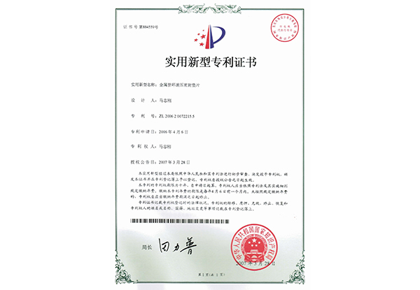 金属管环滚压密封垫片 实用新型专利证书